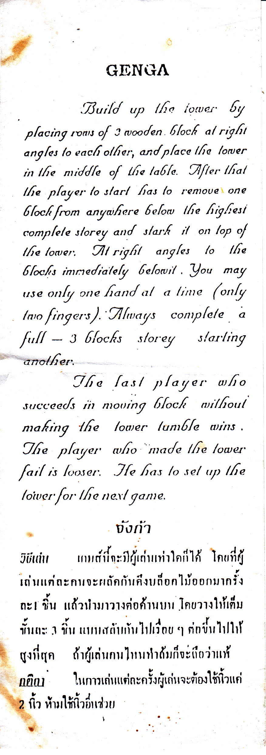 Jenga - instruction in English and Thai [1] - in English [2] - in Thai [3]