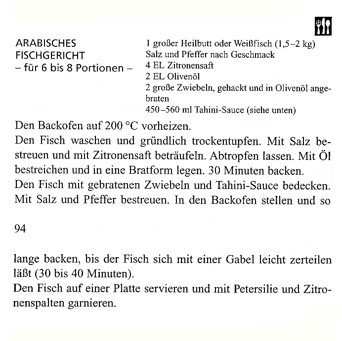 Tahini-Sauce - gebackener Fisch - Füllung, S.95