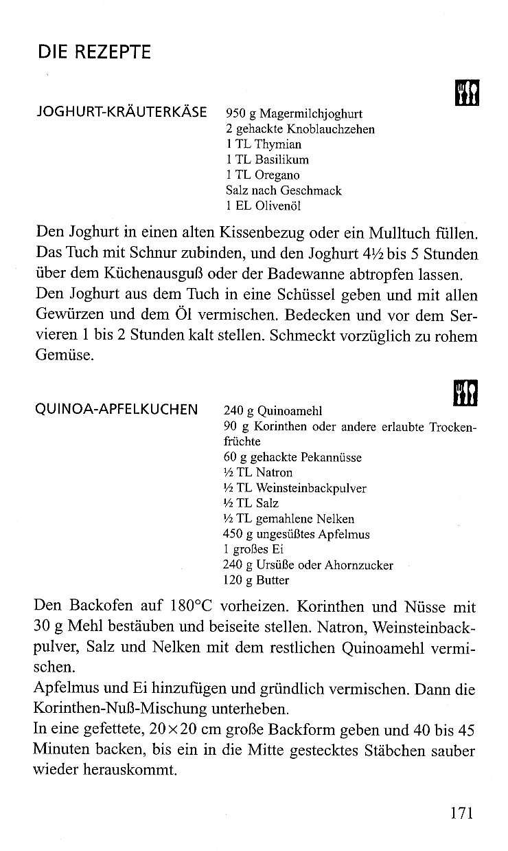 Joghurt-Kräuterkäse - Quinoa-Apfelkuchen, S.171