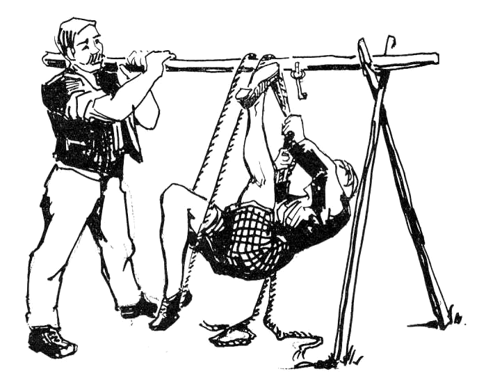 In einem Korb schaukelten Berner Knaben einen Kameraden hin und her. Der im schwebenden Korb sitzende erhielt einen Preis, wenn er unterdessen eine Nähnadel einfädeln konnte.