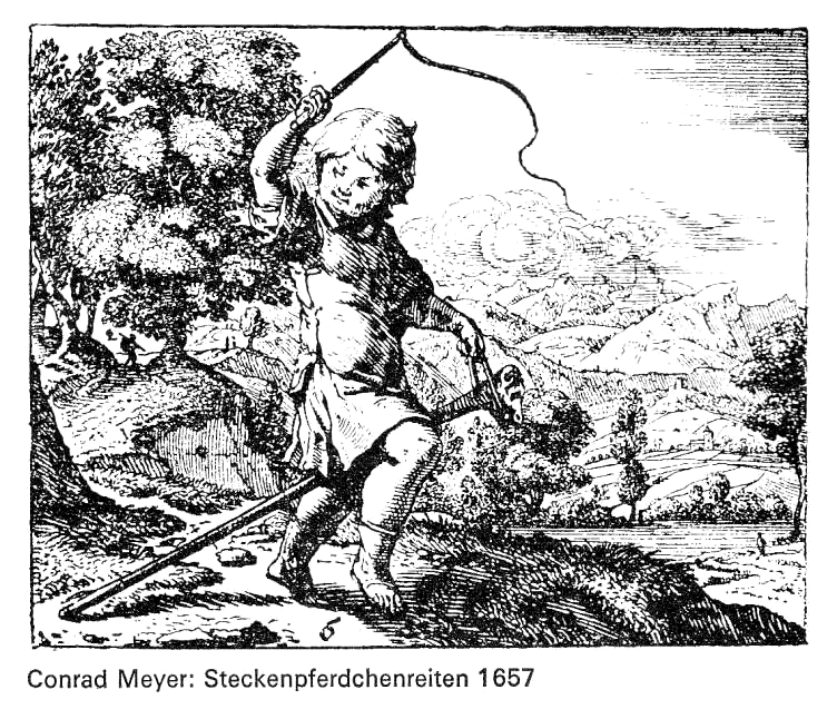 "Sokrates, der griechische Weise, ritt mit den kindern 'auf dem Rohr' und Horaz erwähnt das Steckenpferd in seinen Satiren. Selbst Luther freute sich, wenn Kindern dieses erste sportliche Spiel betrieben."