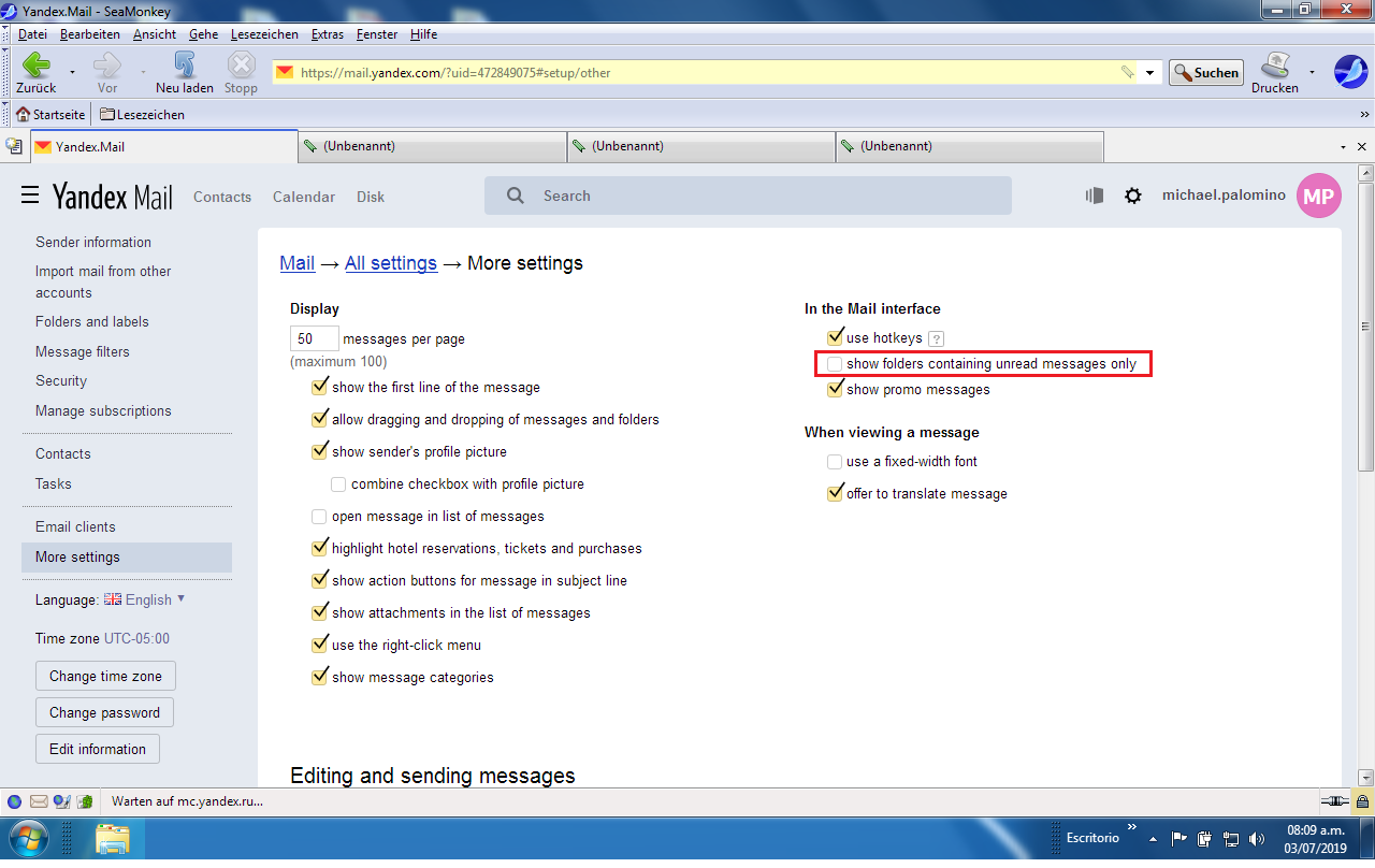 3.7.2019: Mein Yandex-Mail wurde teilweise