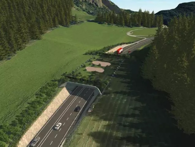 Autobahnen für Mensch und Tier Grüne Brücke für Wildtiere - Südtirols erstes Projekt für sichere Wege am Kniepass - Link (26.11.2024) Südtirol plant Grüne Brücke über Autostrassen und Autobahnen für Mensch und Tier [23-1] Foto: Rendering: Landeabteilung Tiefbau |