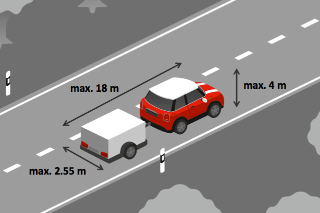 -- maximale Länge von Zugfahrzeug+Anhänger 18m, Breite 2,55m, Höhe 4m