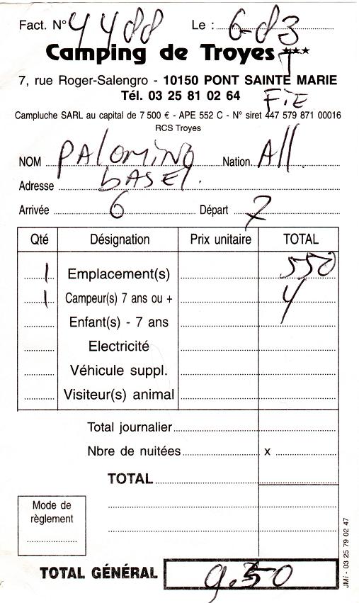 Der Campingplatz von Troyes, der Prospekt, Vorderseite