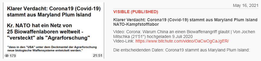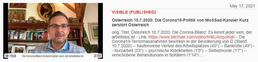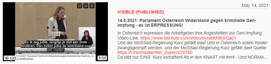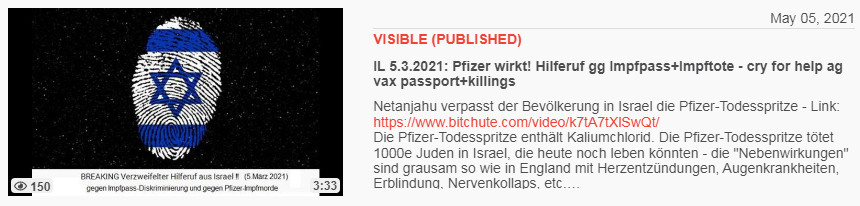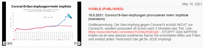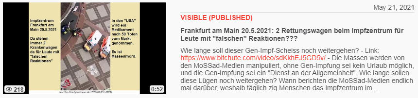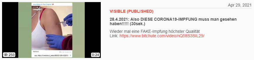 Video vom 28.4.2021: Fake-Corona-Impfung - Video hochgeladen am 29.4.2021 - Link: https://www.bitchute.com/video/nQ5ttS3SIL29/