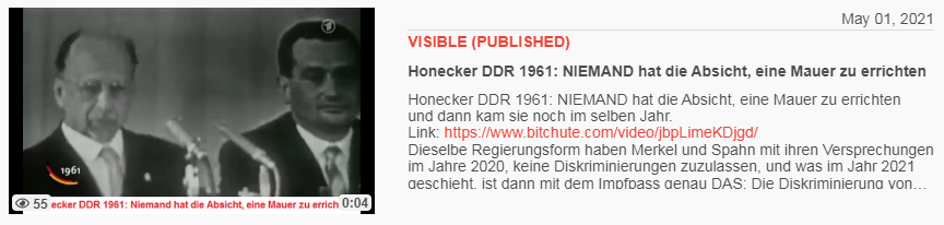 Video zur Geschichte: Honecker sagte auch: "Niemand hat die Absicht, eine Mauer zu bauen" - Video hochgeladen am 1.5.2021