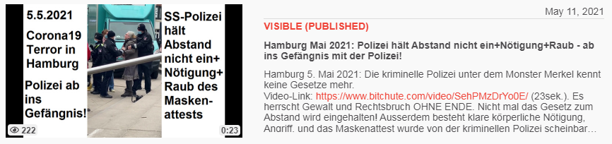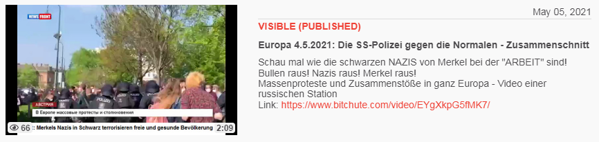 Video vom 4.5.2021: Ganz Europa: Die kriminelle COSTAPO (SS-Polizei) von Castellis gegen Wahrheitswisser - Zusammenschnitt - Video hochgeladen am 5.5.2021 - Link: https://www.bitchute.com/video/EYgXkpG5fMK7/
