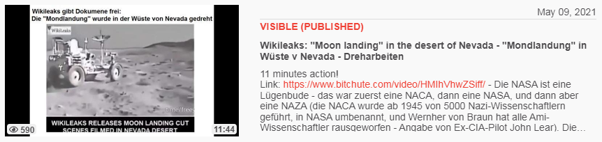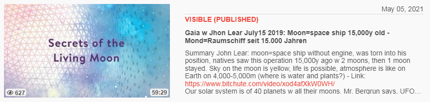 Video zur Geschichte vom 15.7.2019 von John Lear: Der Mond ist ein Raumschiff für die Spionage seit 15.000 Jahren - Video hochgeladen am 5.5.2021