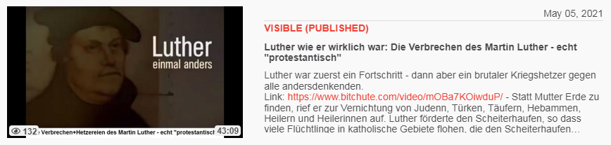 Video zur Geschichte im 16.Jh.: Luther, wie er wirklich war: echt "protestantisch" - Video hochgeladen am 5.5.2021