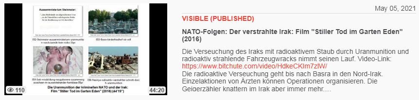 Video zur Geschichte: Die kriminelle NATO verstrahlt den Irak: Todesstaub "Deadly dust": Uranmunition und die Folgen - Video hochgeladen am 5.5.2021
