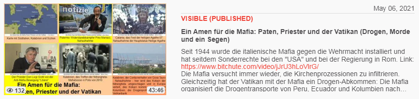 Video zur Geschichte: Kr.päd.kath. Gay-Vatikan: Ein Amen für die Mafia mit Drogenhandel mit Peru und der Ndrangheta - Video hochgeladen am 6.5.2021