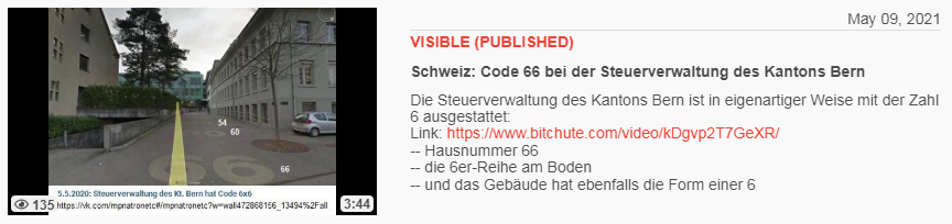 Video zur Geschichte: Satanisten regieren Bern mit dem Code 66 bei der Steuerverwaltung - Video hochgeladen am 9.5.2021