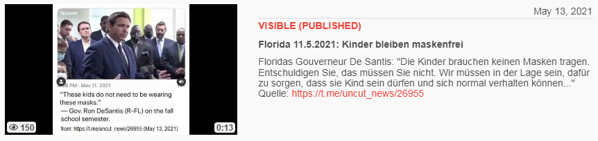 Widerstand gegen Coronawahn in Florida: De Santis befiehlt: Kinder müssen KEINE Maske tragen - Video hochgeladen am 13.5.2021