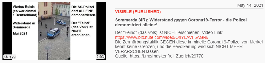 Corona-Terror im 4R: Zusammenscnitt der Tätlichkeigen der COSTAPO SS-Polizei gegen Wahrheitswisser (Frauen sind mitgemeint) - Video hochgeladen am 25.5.2021 - Link: https://www.bitchute.com/video/sgmUGo4OHHaA/