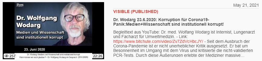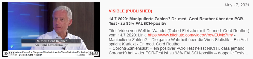 Widerstand gegen Coronawahn: WARNUNG von Dr. Wodargh: Die Medien und die Wissenschaft sind institutionell korrupt geworden - Video hochgeladen am 21.5.2021 - Link: https://www.bitchute.com/video/Zv7ZdVcHbcJY/