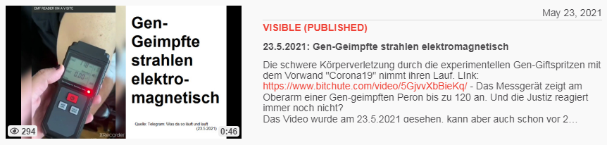 Corona-Wahrheiten: Corona-Geimpfte strahlen elektromagnetisch, es ist messbar - Video hochgeladen am 23.5.2021