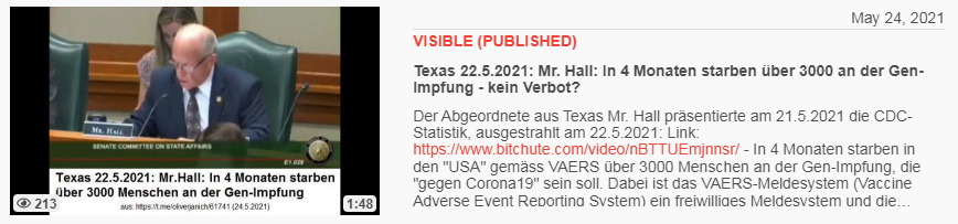 Widerstand gegen Coronawahn in Texas: Dr. Hall berichtet: In 4 Monaten starben über 3000 Leute an der Coronaimpfung - Video hochgeladen am 24.5.2021
