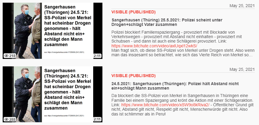 Corona-Terror in Thüringen: Die COSTAPO SS-Polizei von Castellis schlägt in Sangerhausen einen Mann zusammen, hält den Abstand nicht ein - Video hochgeladen am 25.5.2021 - Links: https://www.bitchute.com/video/xSW9o8kRiva2/ - https://www.bitchute.com/video/axlUqxl12wkS/