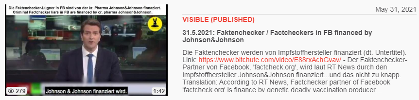 Satanisten: Die "Faktenchecker" bei Facebook sind von J&J finanziert und zensieren somit immer FÜR die tödliche Pharma - Video hochgeladen am 31.5.2021